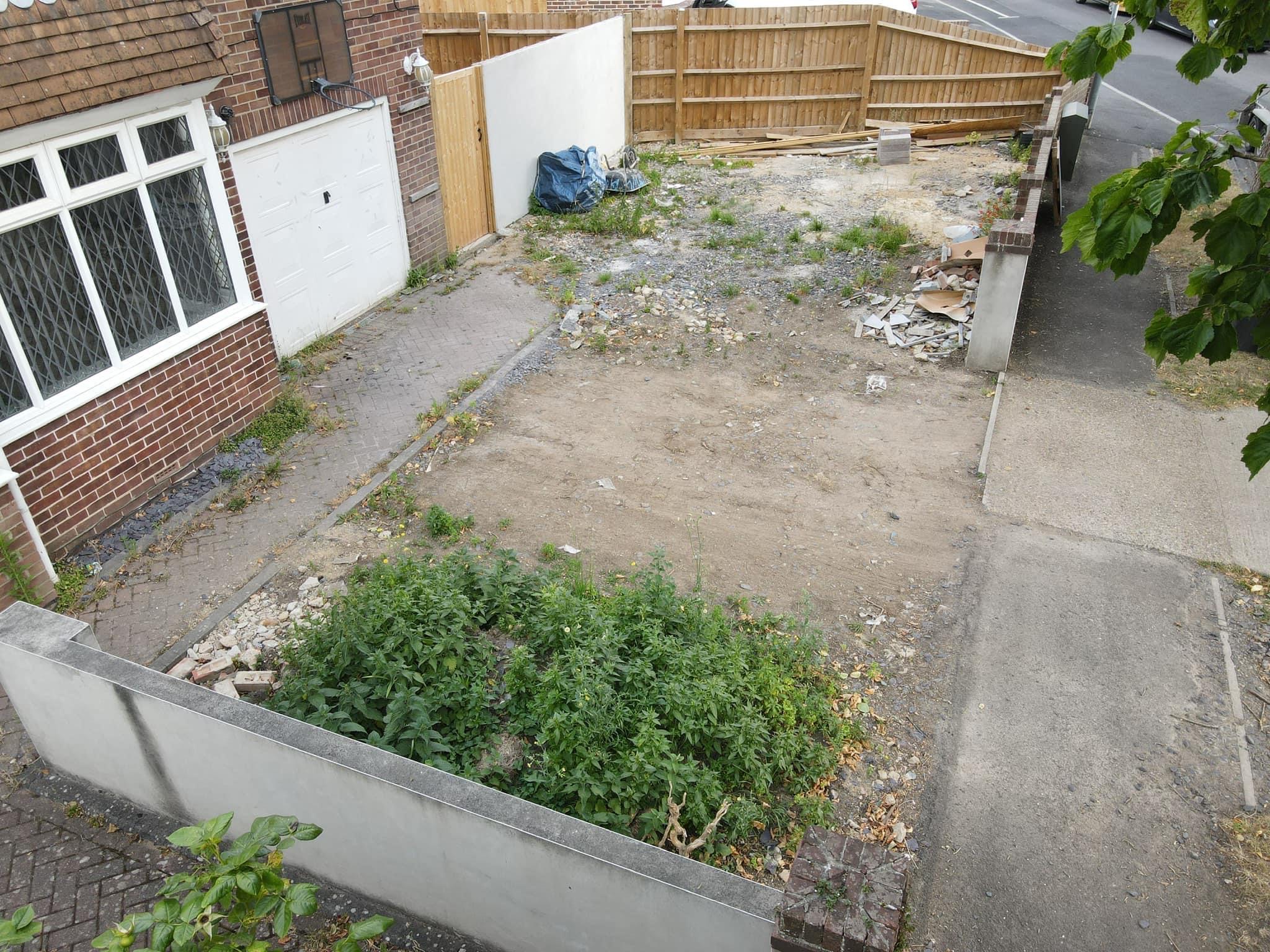 Pull up existing stone driveway which was messy, weedy and unattractive. Excavated 12 inches of dirt and soil, laid Terram and re stoned with type 2. Compacted, Curbs laid around the perimeter and then pavers laid including a small apron on the driveway entrance. Driveway was then ready for Tarmac which has completely transformed this property.