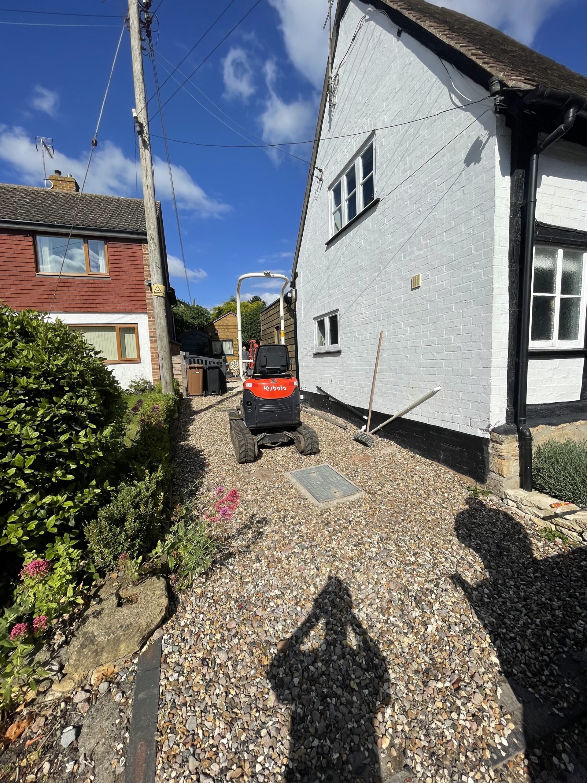 This project in Eckington was for returning elderly customers. We had previously built an extension on their property so when they started experiencing problems with their driveway they requested some alterations to be made. The problem was that the gradient of their driveway was too much for the gravel. They were constantly losing traction getting on the driveway and flicking gravel out into the road. We dug off the whole area, reduced the man hole level by 200mm and decreased the gradient of their driveway. We when laid a paved apron at the bottom of the driveway which gave them traction and helped retaining the new gravel.