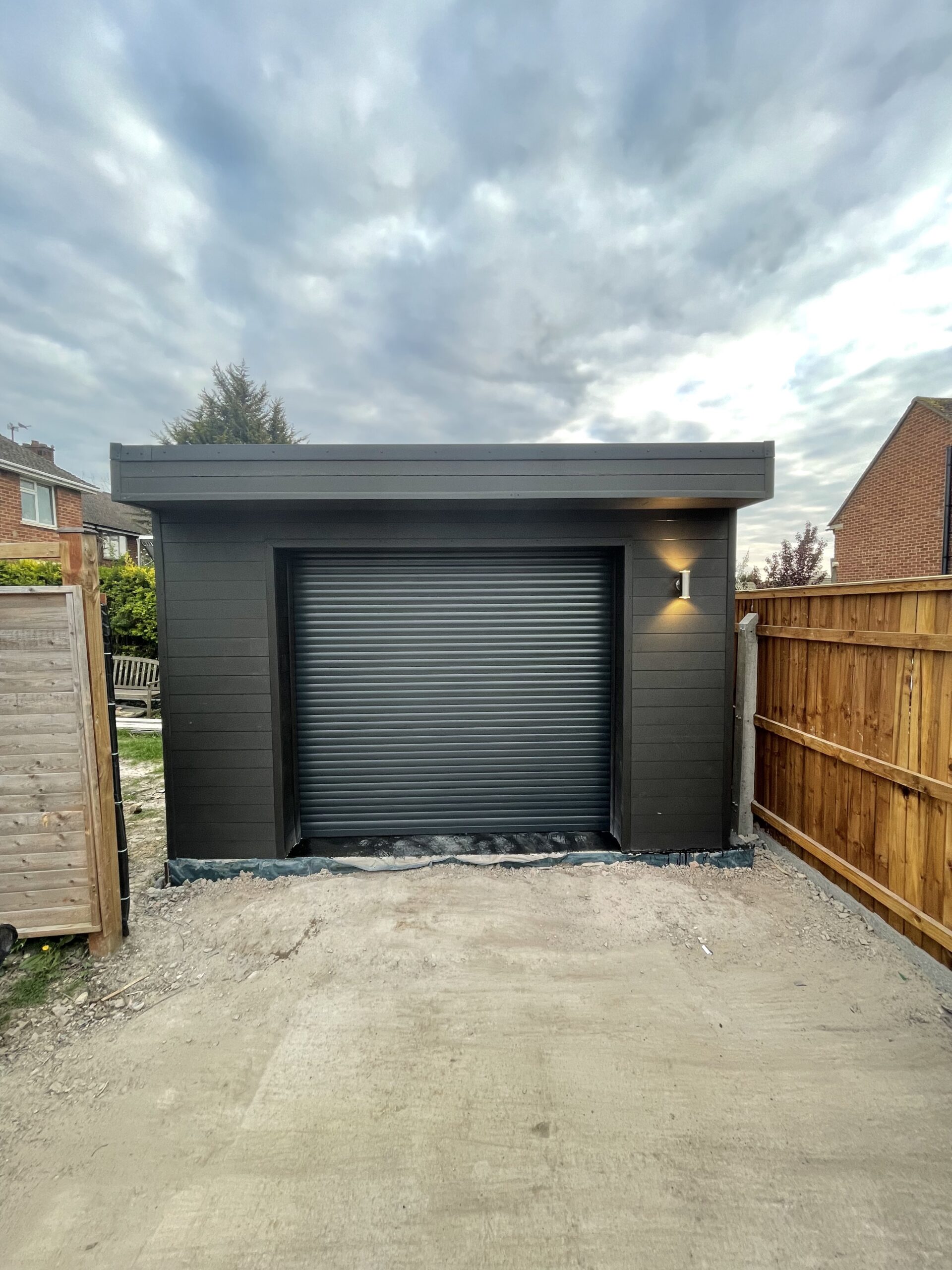 Once the concrete pad had hardened we built the building with concrete blocks with several pillars for added strength. The building was then battened to allow a fixings for the composite cladding. Electrical sockets and lights were installed along with a remote controlled electric roller shutter door. The roof was finished in EPDM with a 30 year product guarantee.