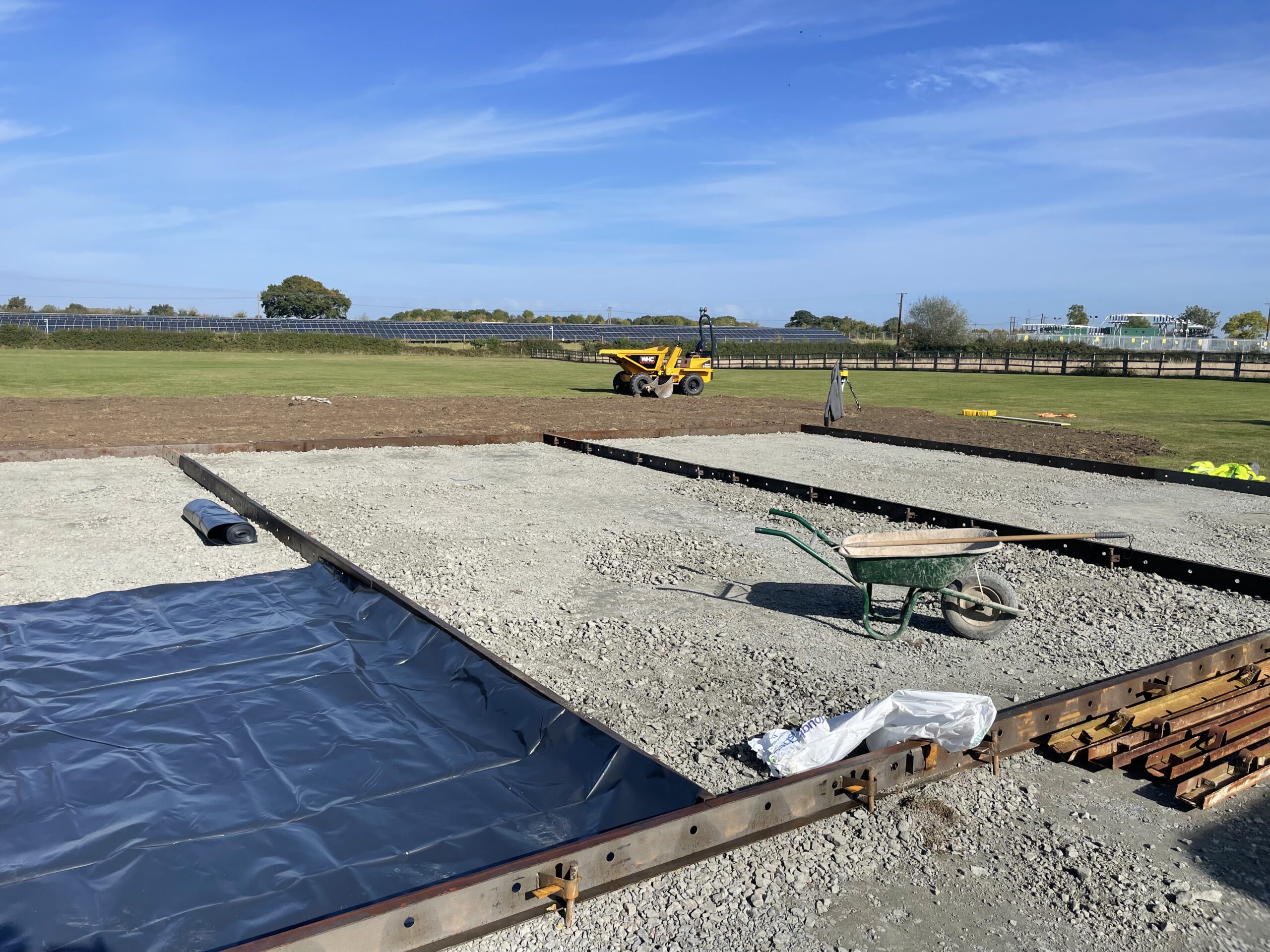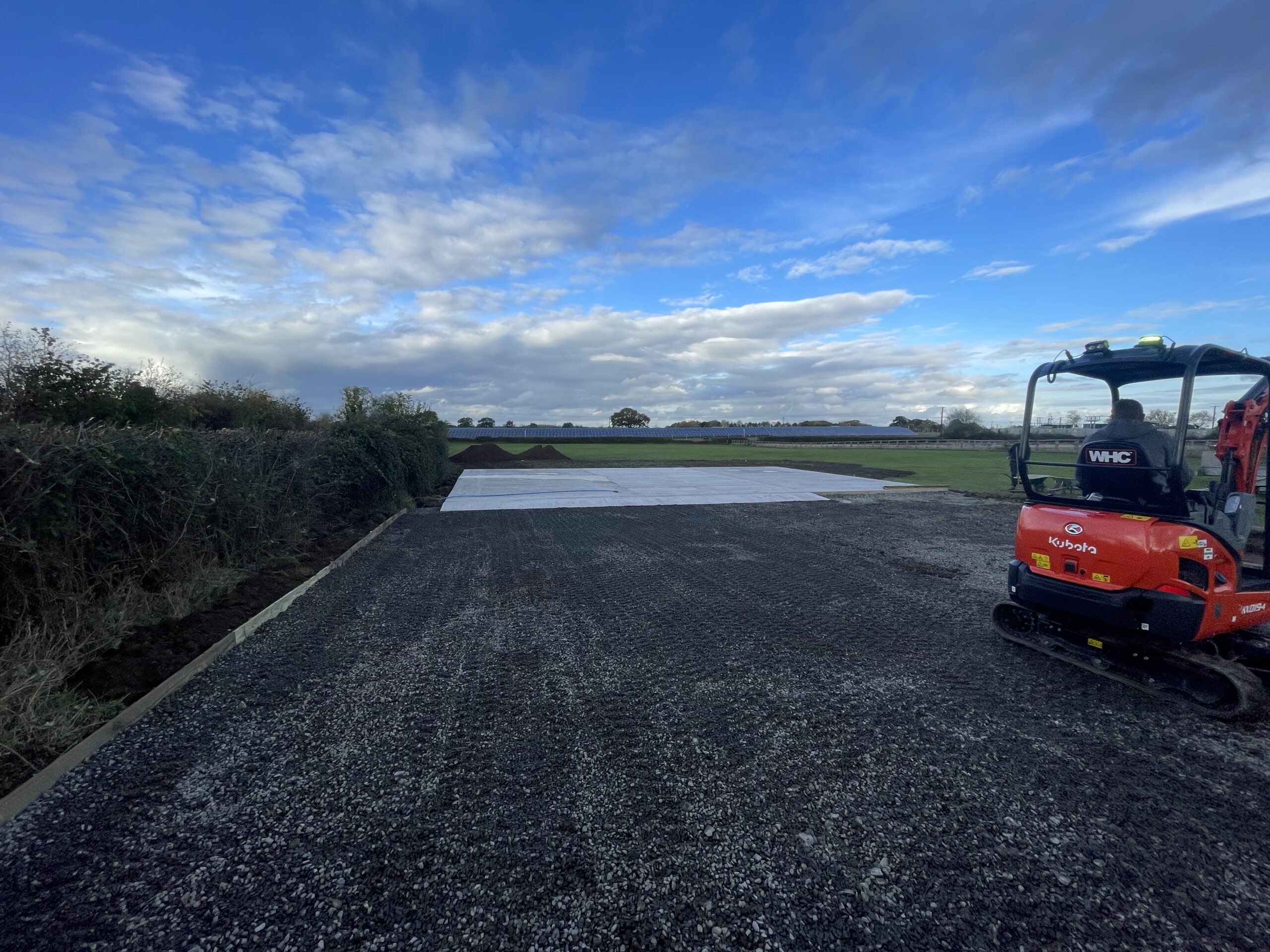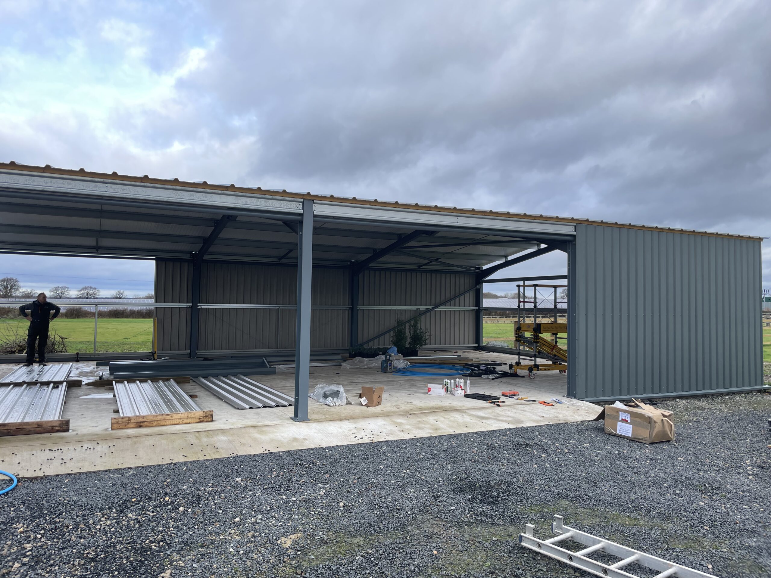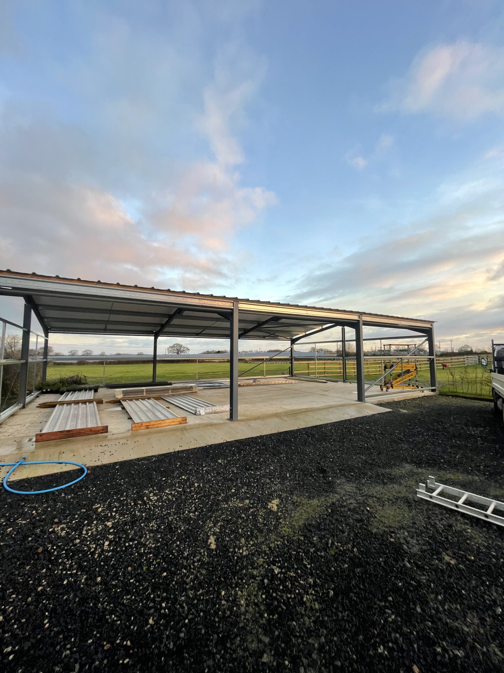 Wasted area transformed with a turning area and new road up to a newly installed steel framed building. Groundworks consisted of digging out and replacing with type 1 and compacted with a bomag. Formwork then installed in bays with road formers. Concrete was pumped in and laid with a power tamper and then a float finish. Steel framed building was erected by our team – a service which we do offer.