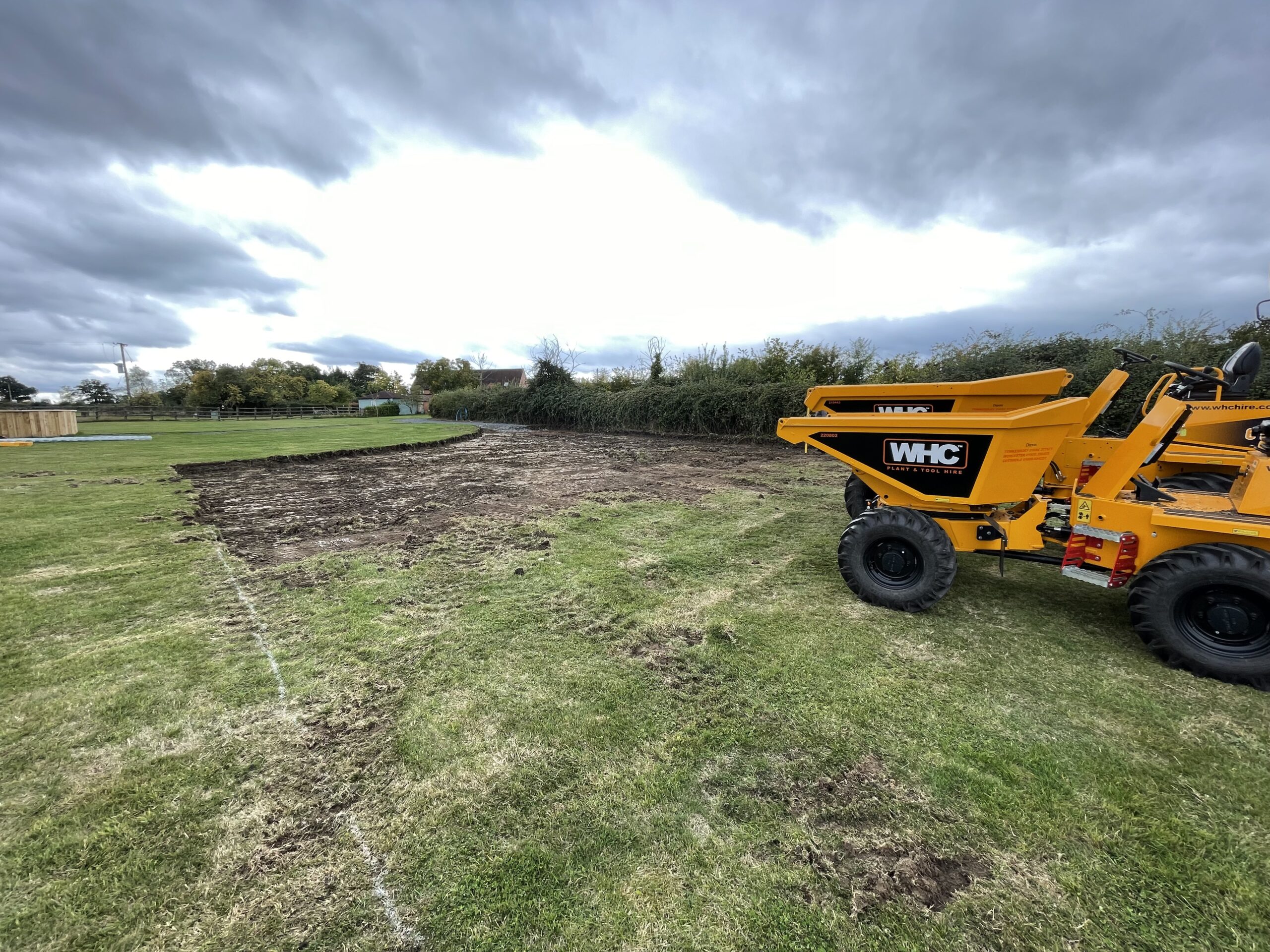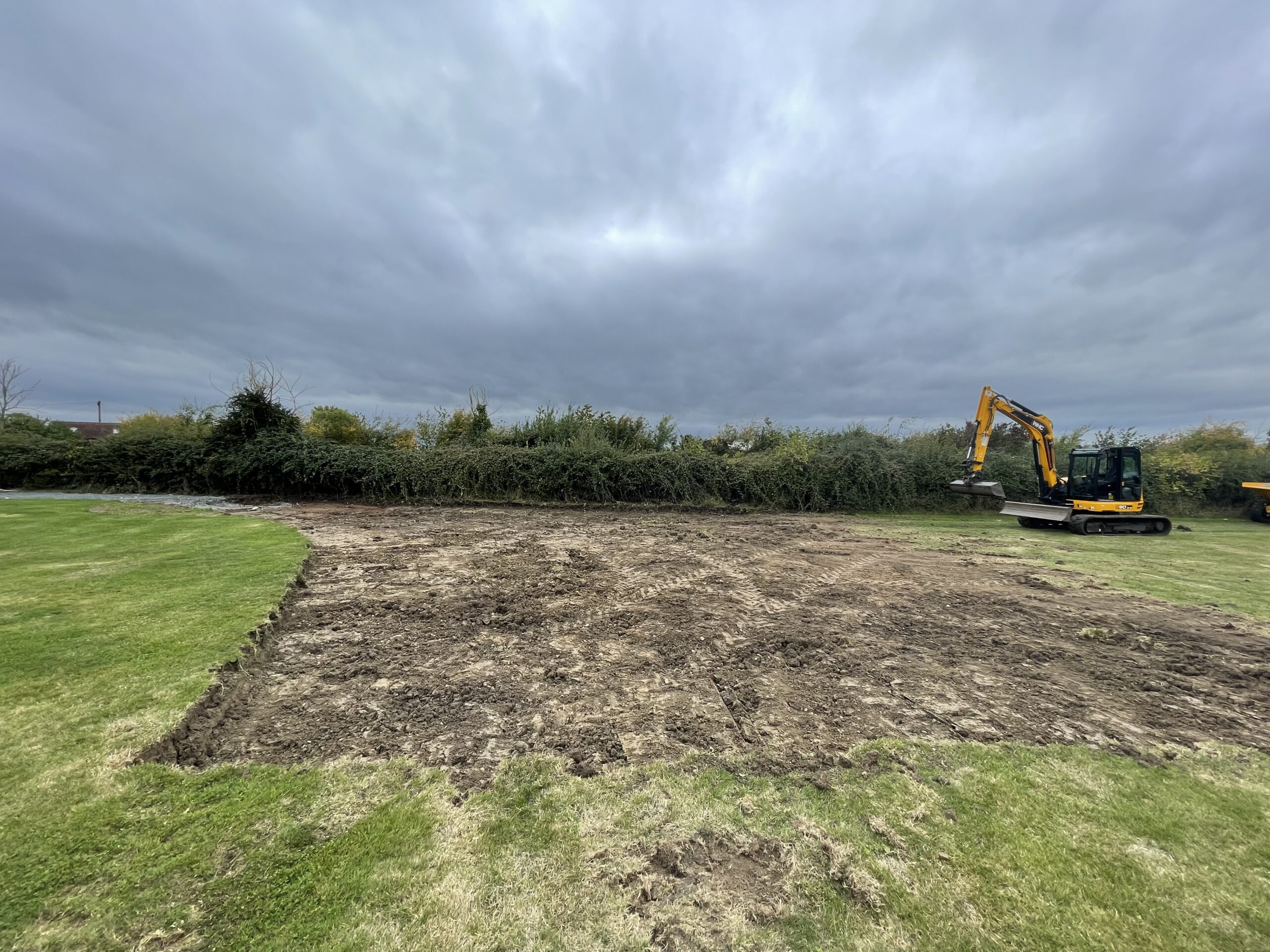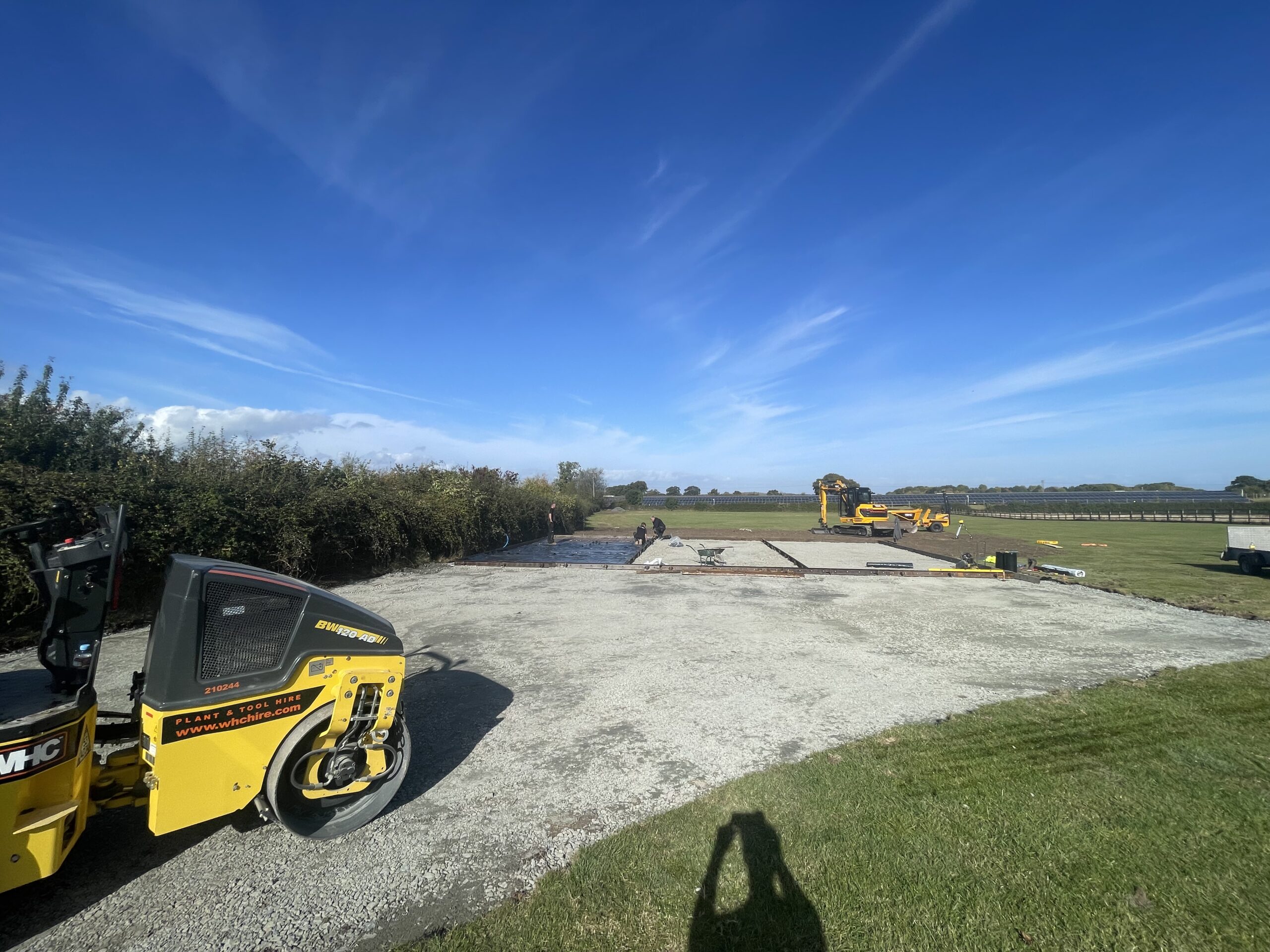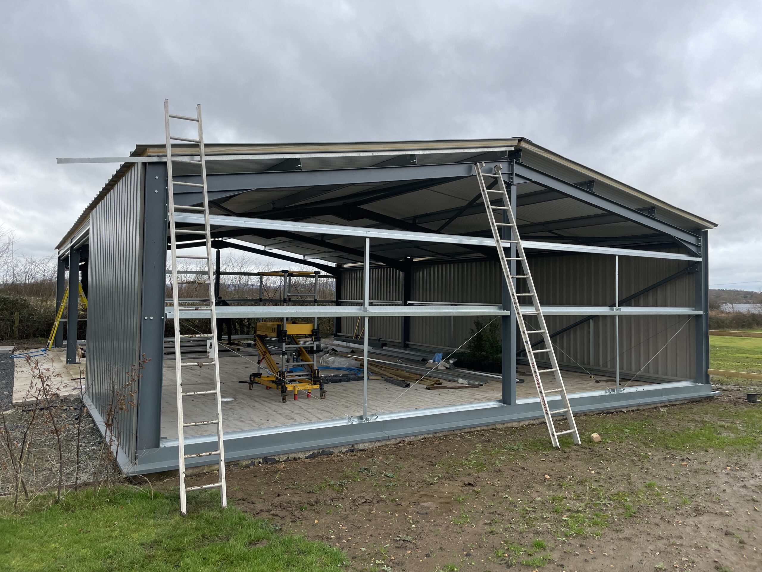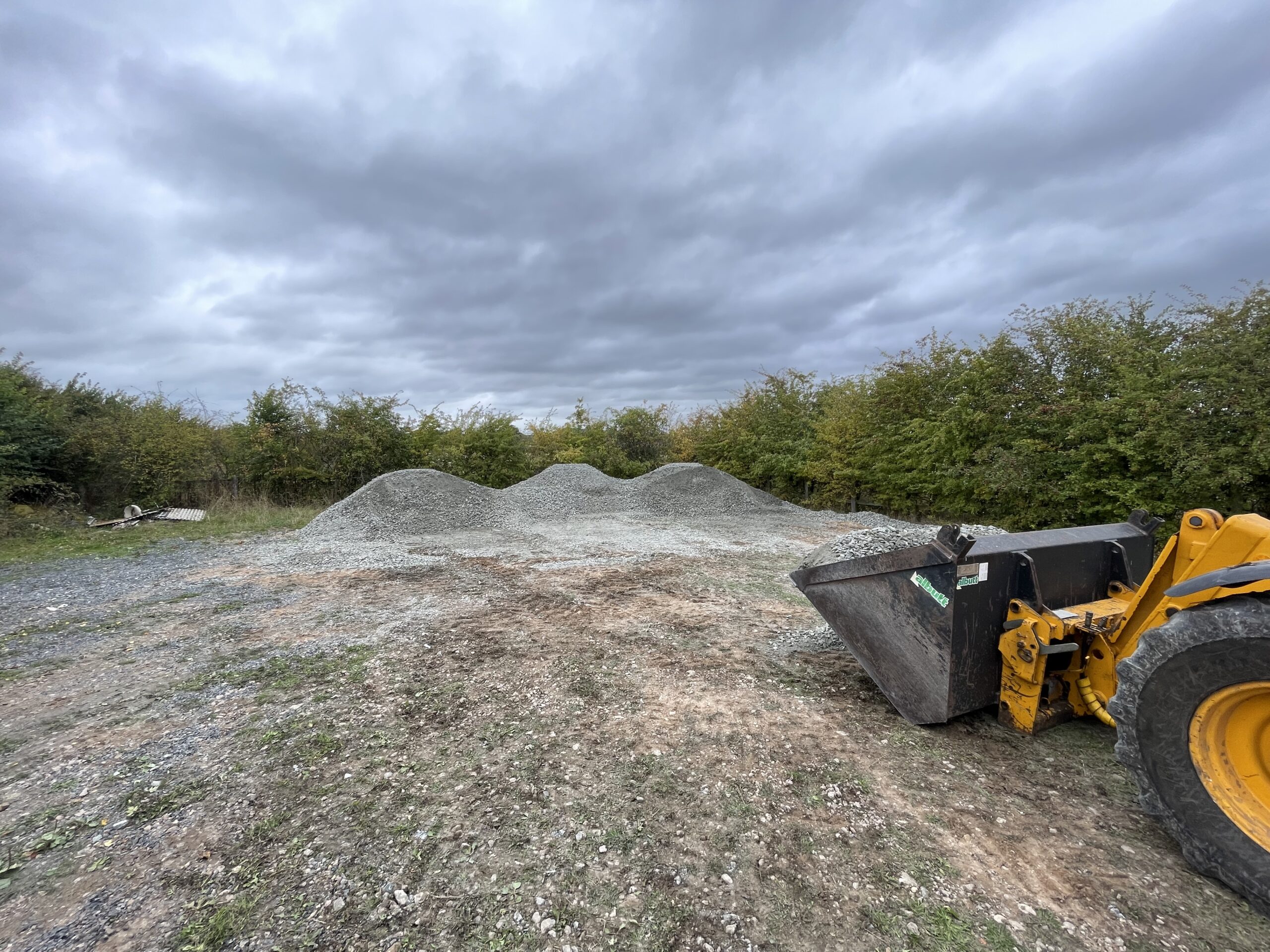 Wasted area transformed with a turning area and new road up to a newly installed steel framed building. Groundworks consisted of digging out and replacing with type 1 and compacted with a bomag. Formwork then installed in bays with road formers. Concrete was pumped in and laid with a power tamper and then a float finish. Steel framed building was erected by our team – a service which we do offer.