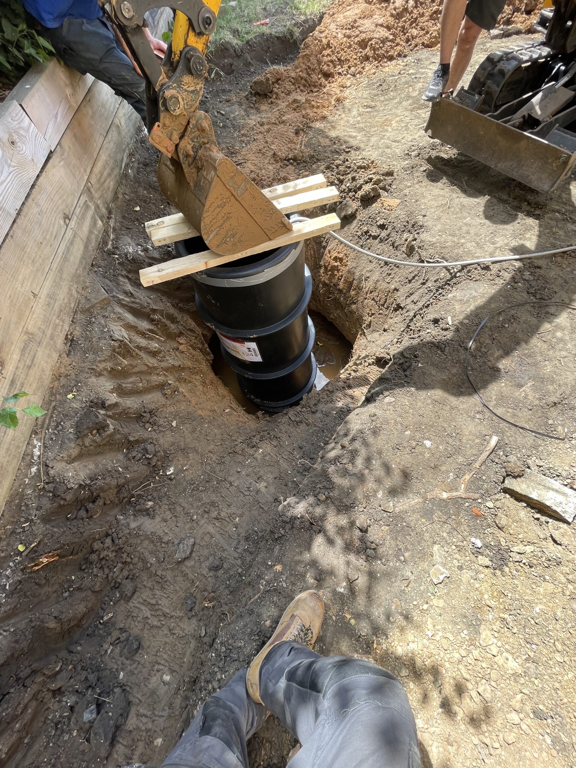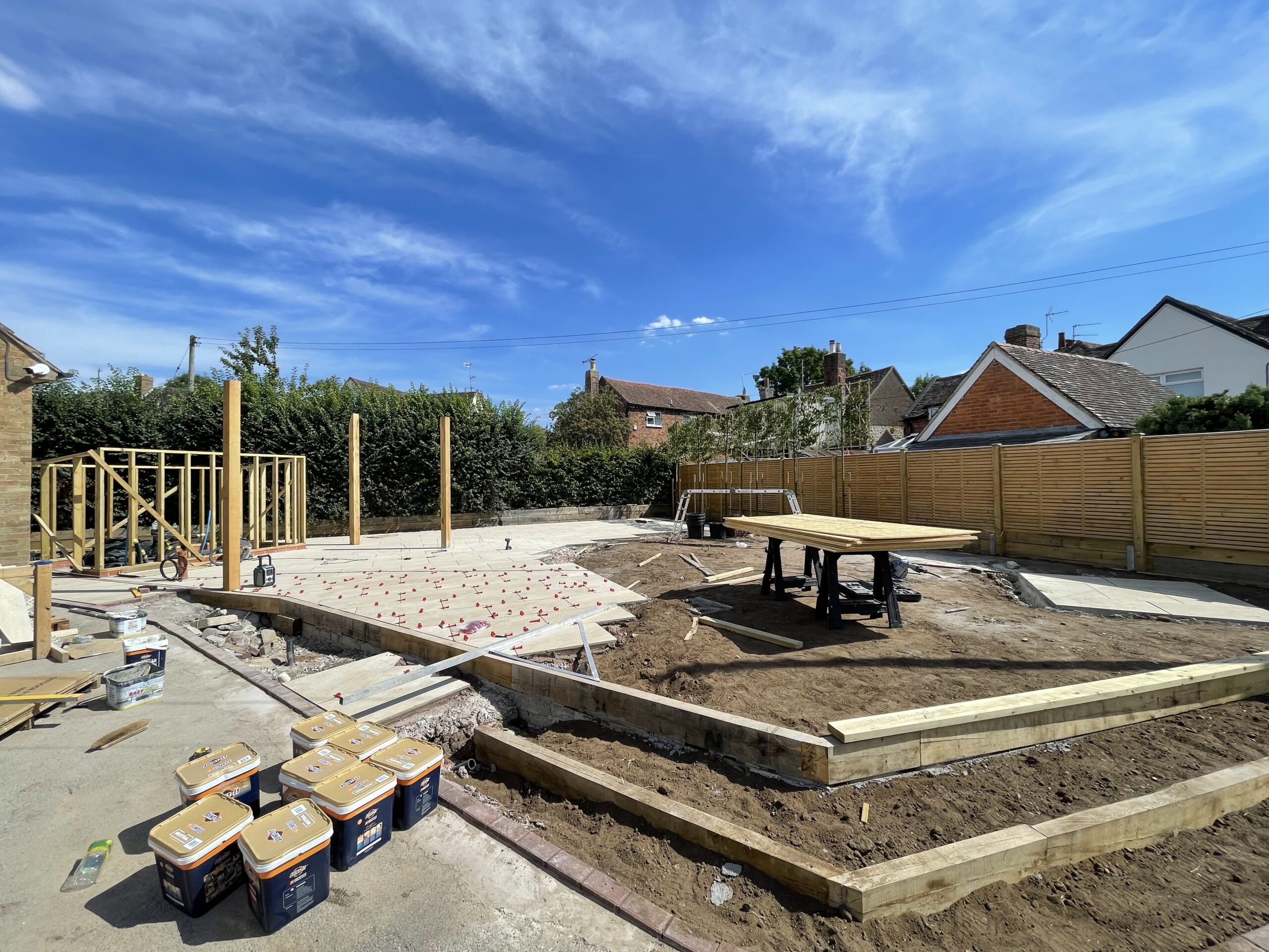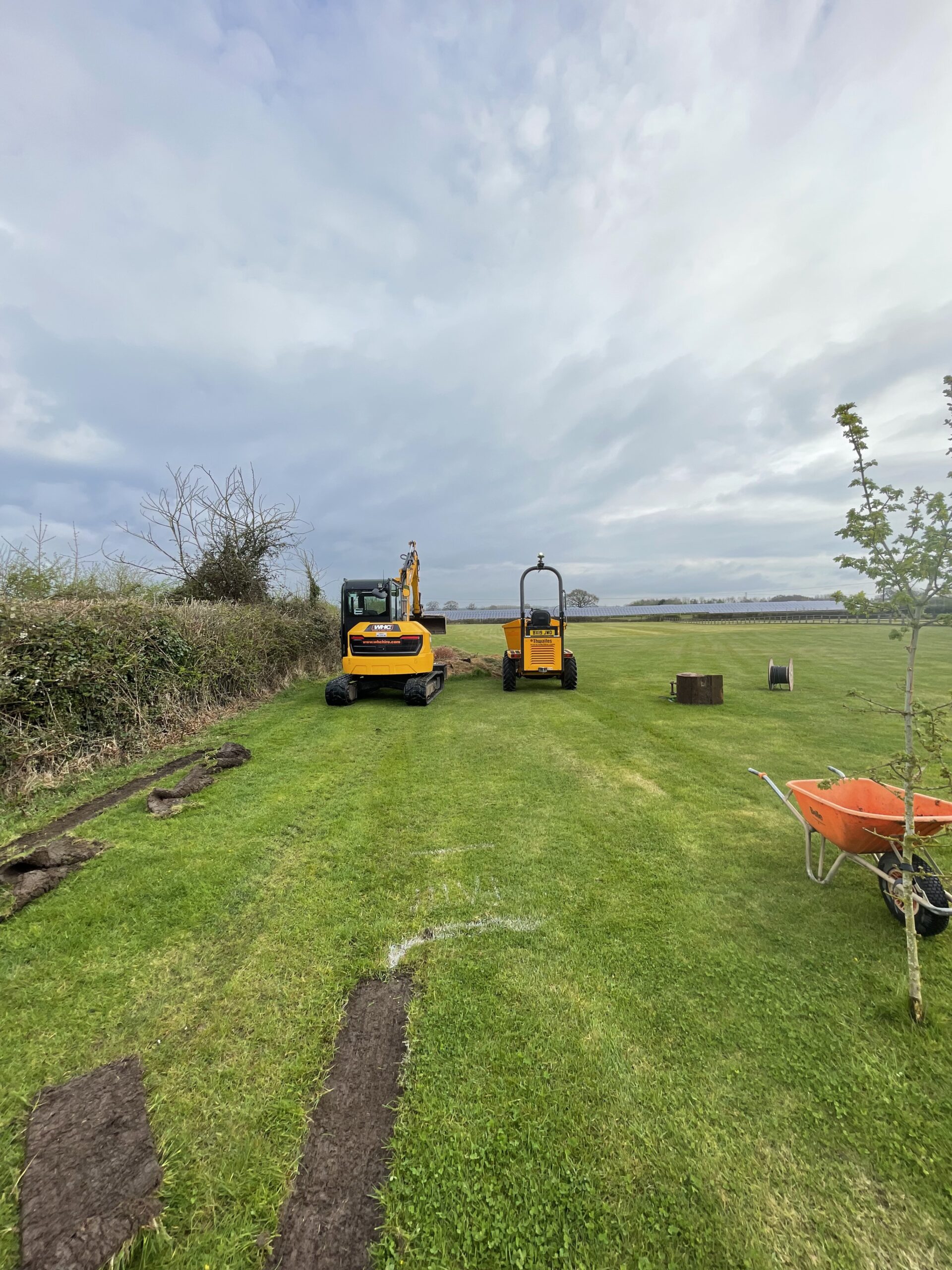 Originally, our customers in Bredon’s Hardwick were having a swimming pool installed in the large garden adjacent to the house. Unfortunately with poor ground conditions (running sand 1500mm below ground level) meant that it was not going to be practical for this property. Instead, plans were drawn up to utilise the space into a much more usable area. With this particular customer conscious of the environment we installed a 5000ltr rainwater harvesting tank to the rear of the timber framed building (built by the customer). We then ran a network of irrigation pipes to various points within the raised flower beds which the customer will use for watering their plants. Additonally, ducting was installed to allow electrical points to be added for a hot tub, garden lighting and power for their soon to be built garden bar.