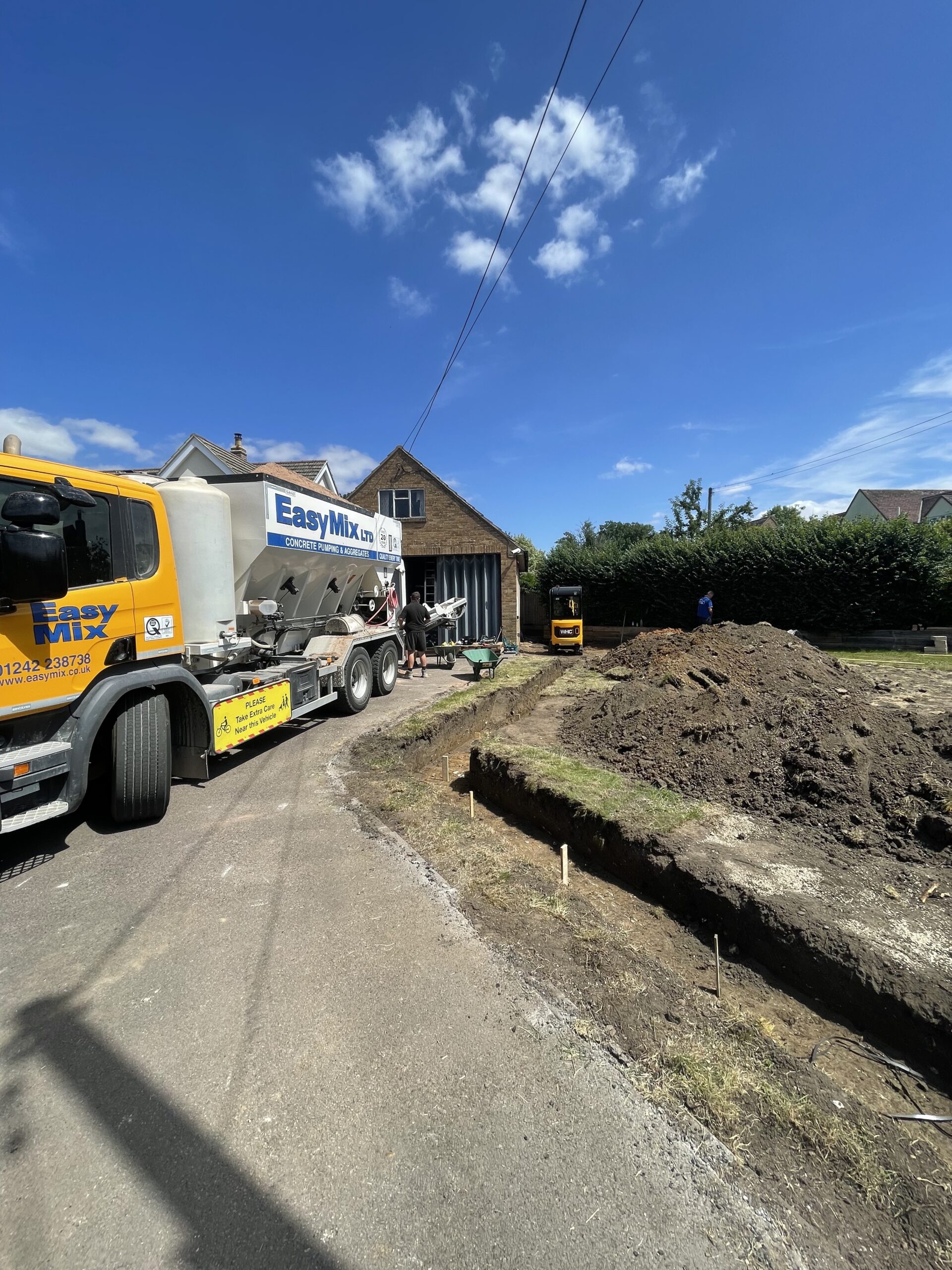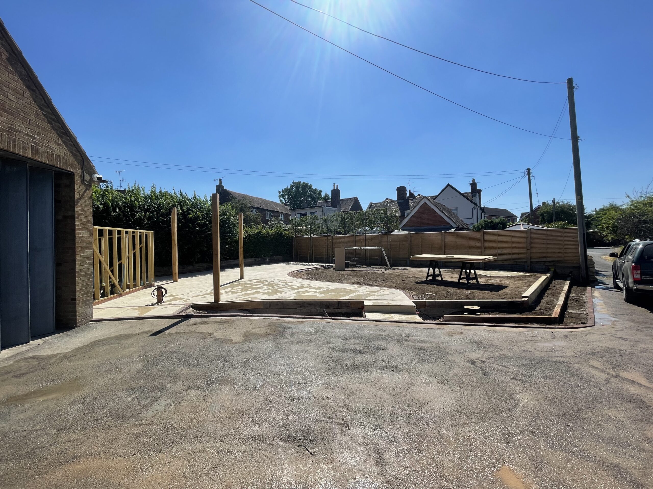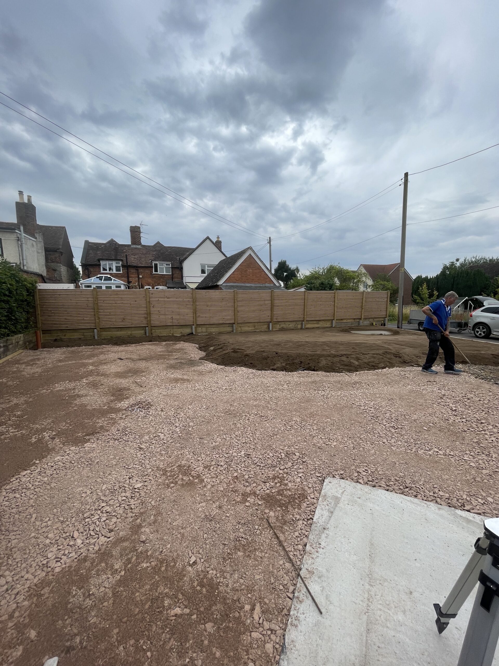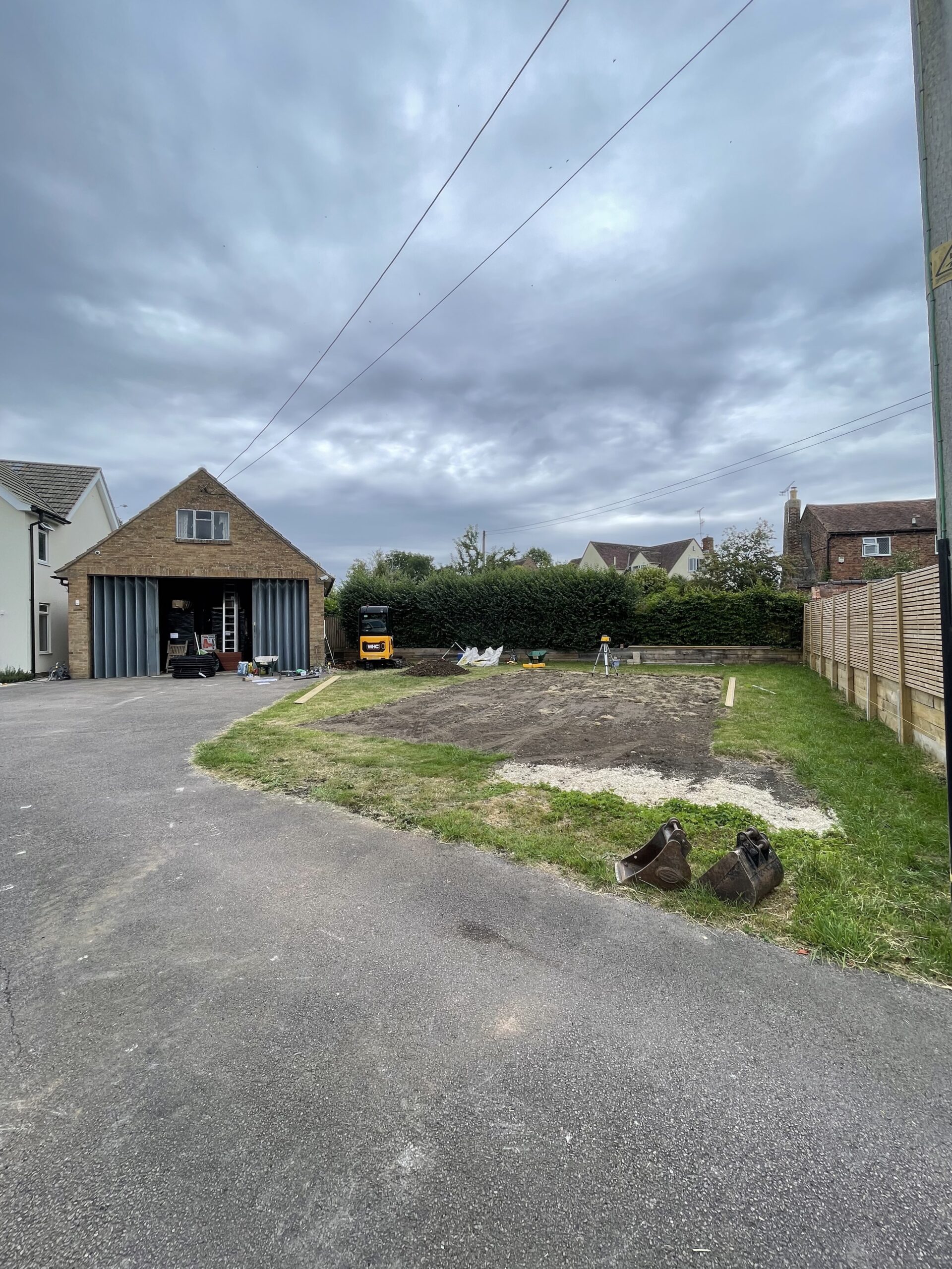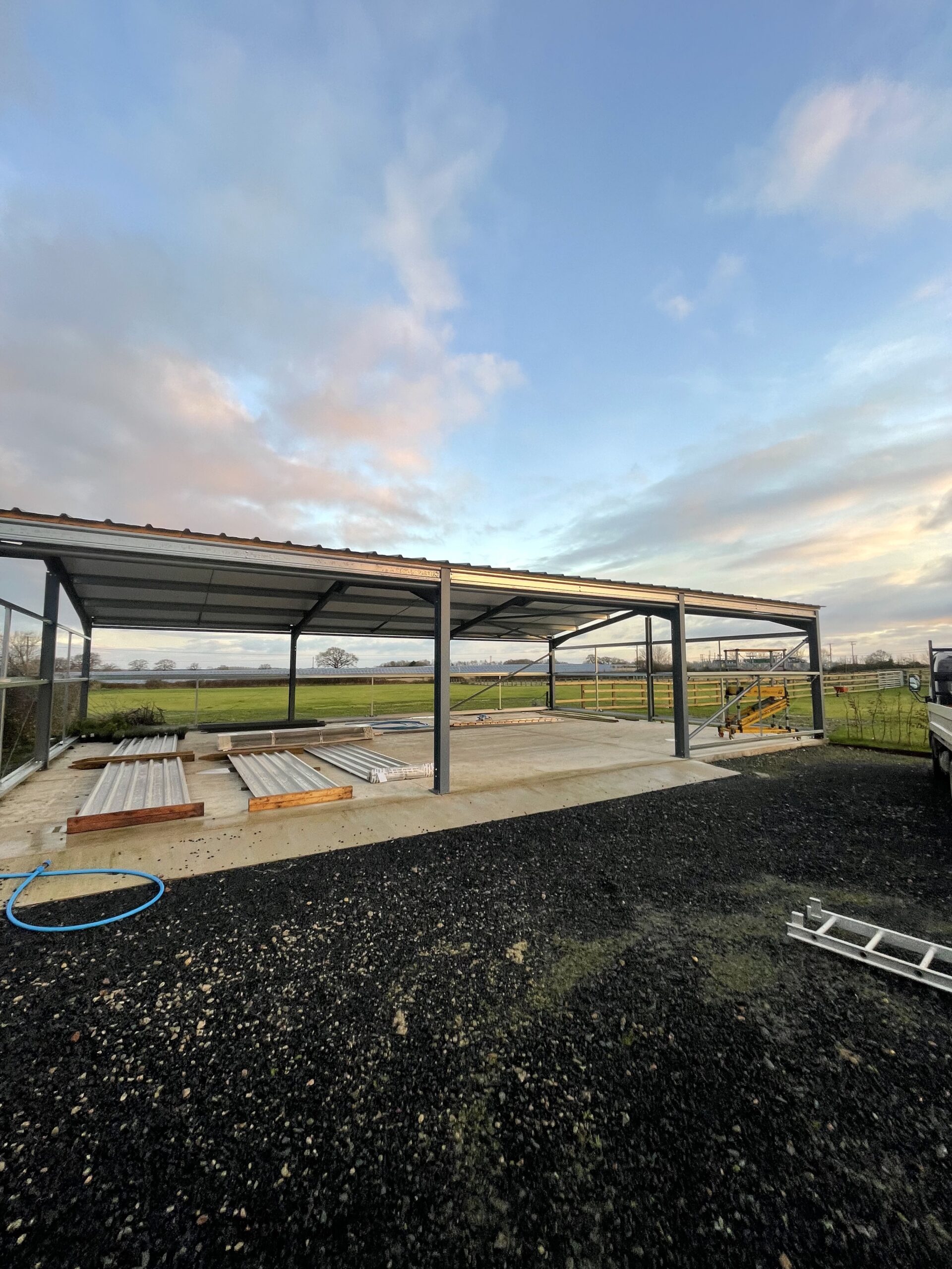 The project was to build a concrete pad for a new steel framed building which will be used for storing vehicles and machinery. We dug out over 100 tonnes of soil, laid membrane, stoned up with 10 inches of type 1 and then formed shuttering with concrete shuttering panels to the exact dimensions of the building.