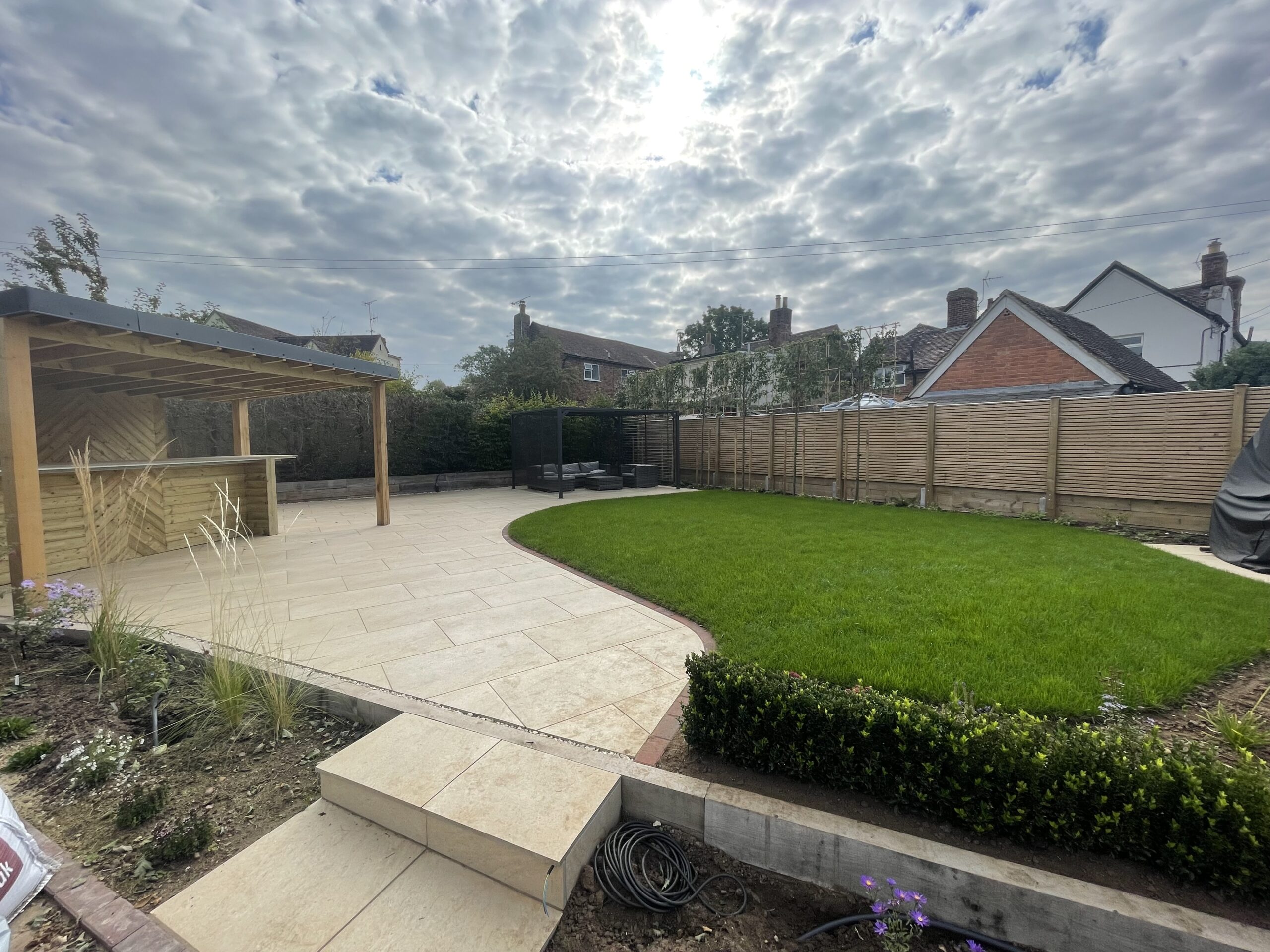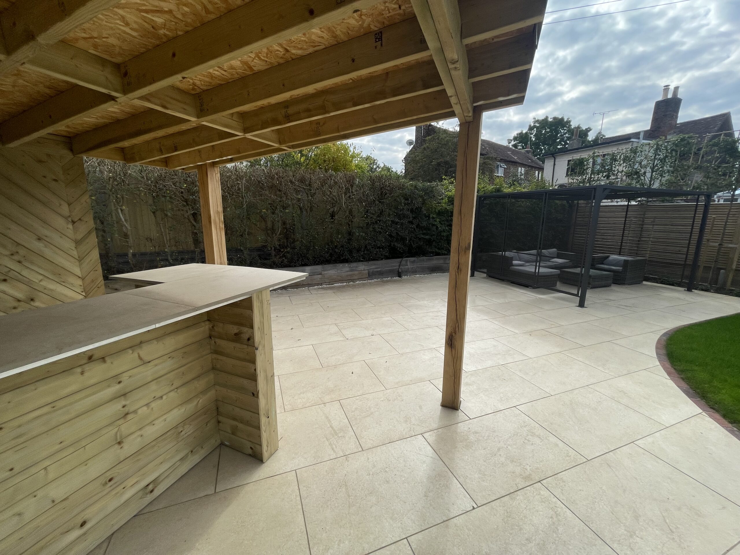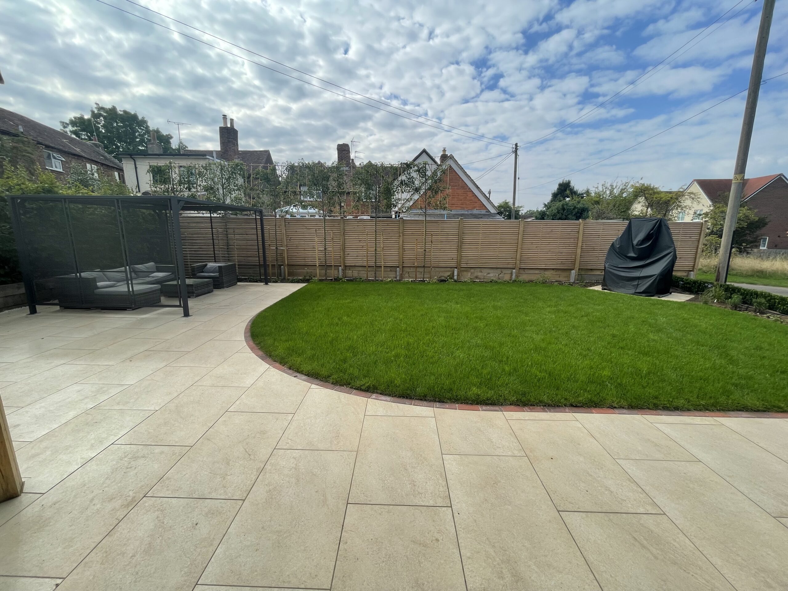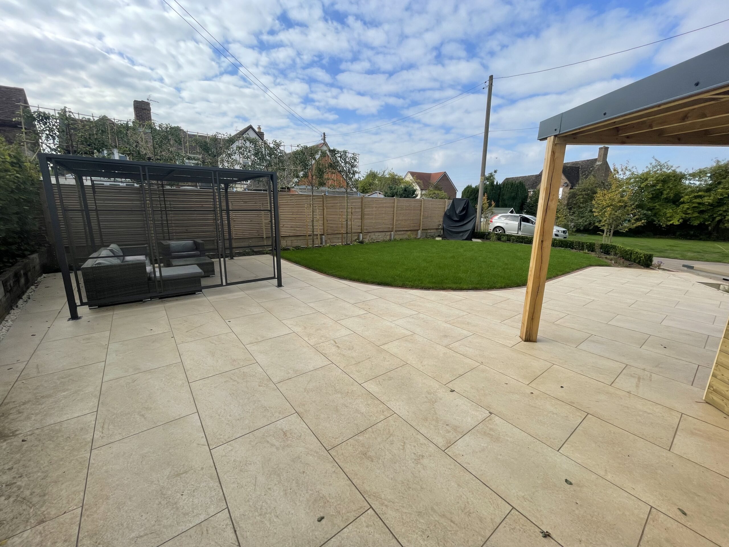 Type 1 was then used to build up the foundations of the patio. Porcelain 900x600mm slabs were then laid half bond to the shape the customer was wanting. We then cut the curve out of the patio and edged with pavers. A new Asphalt driveway will be installed in the coming year.
